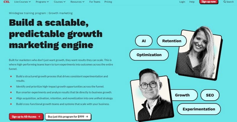 CXL Institute fits the freelancer obsessed with funnel metrics. Its growth marketing minidegree digs into using AI and data for constant testing, from finding new customers to keeping them.
